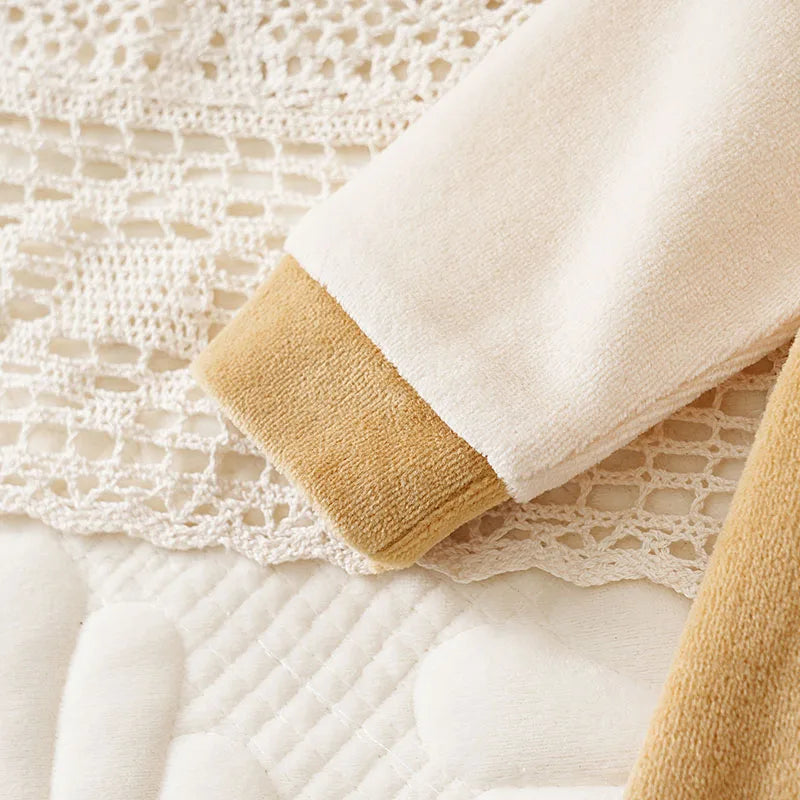 Made from a soft cotton and polyester blend, it’s gentle on delicate baby skin while providing warmth and flexibility for active little ones. Its cute festival-inspired pattern makes it an adorable choice for both baby boys and girls.