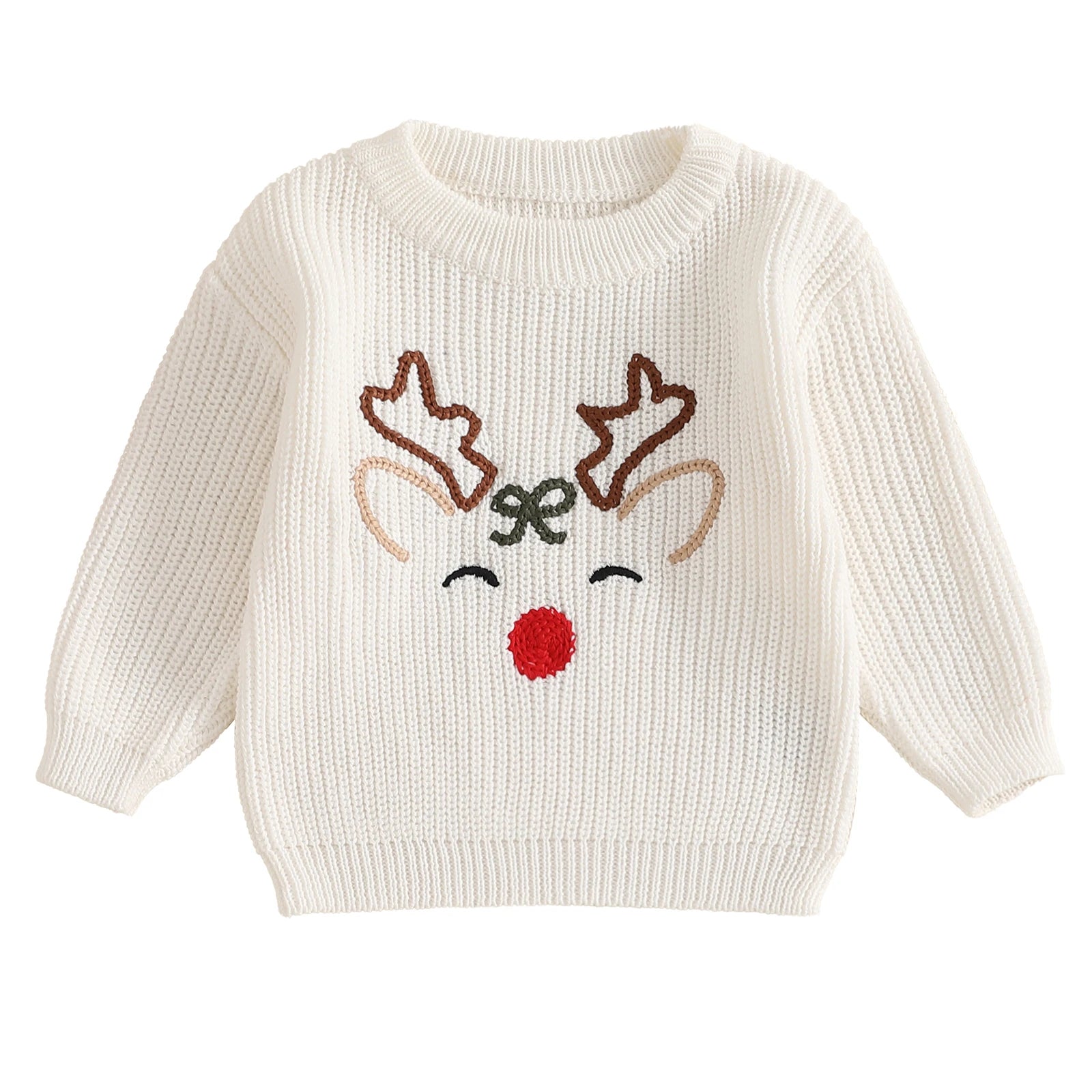 Toddler Christmas Sweater – Reindeer Head Chunky Knit Pullover 🎄